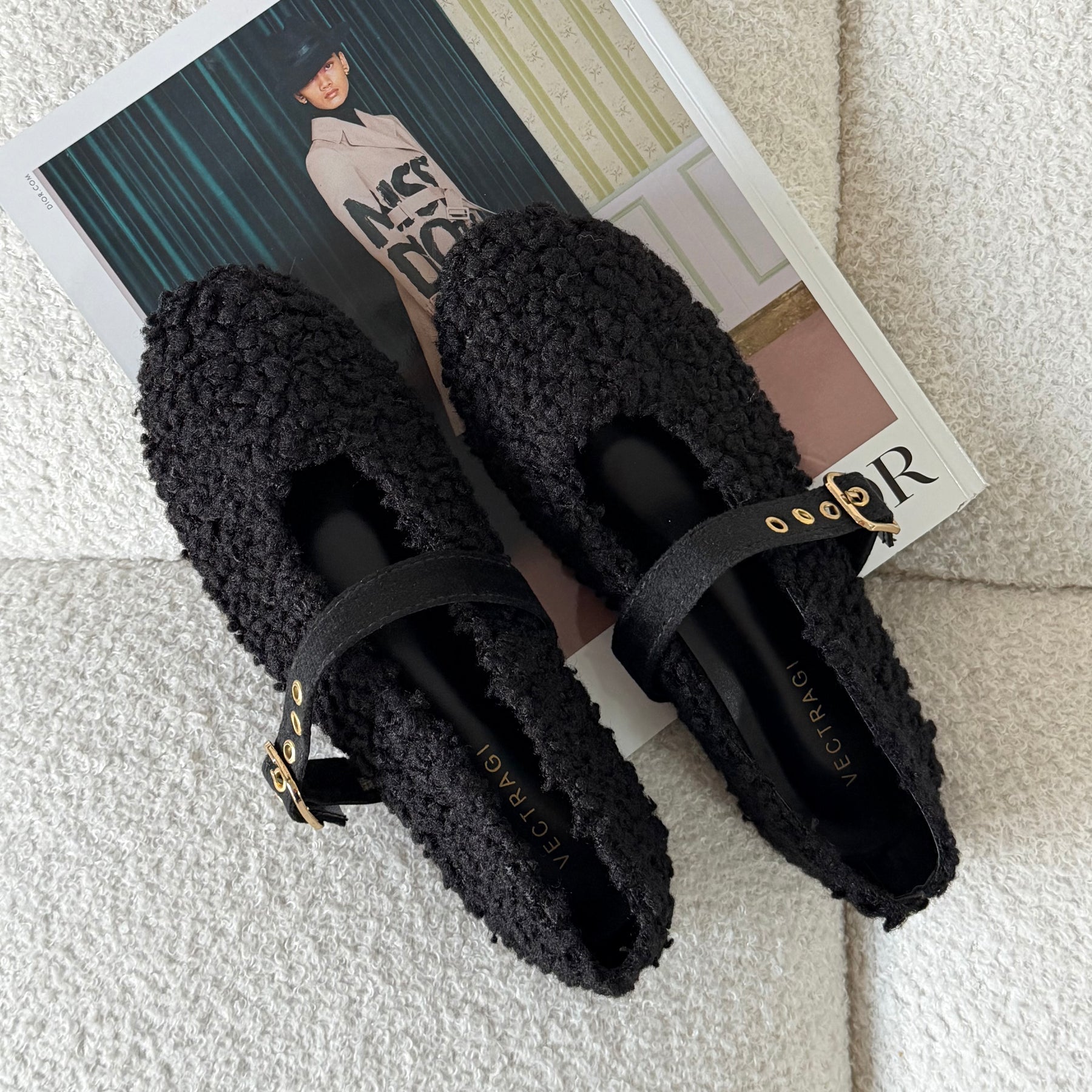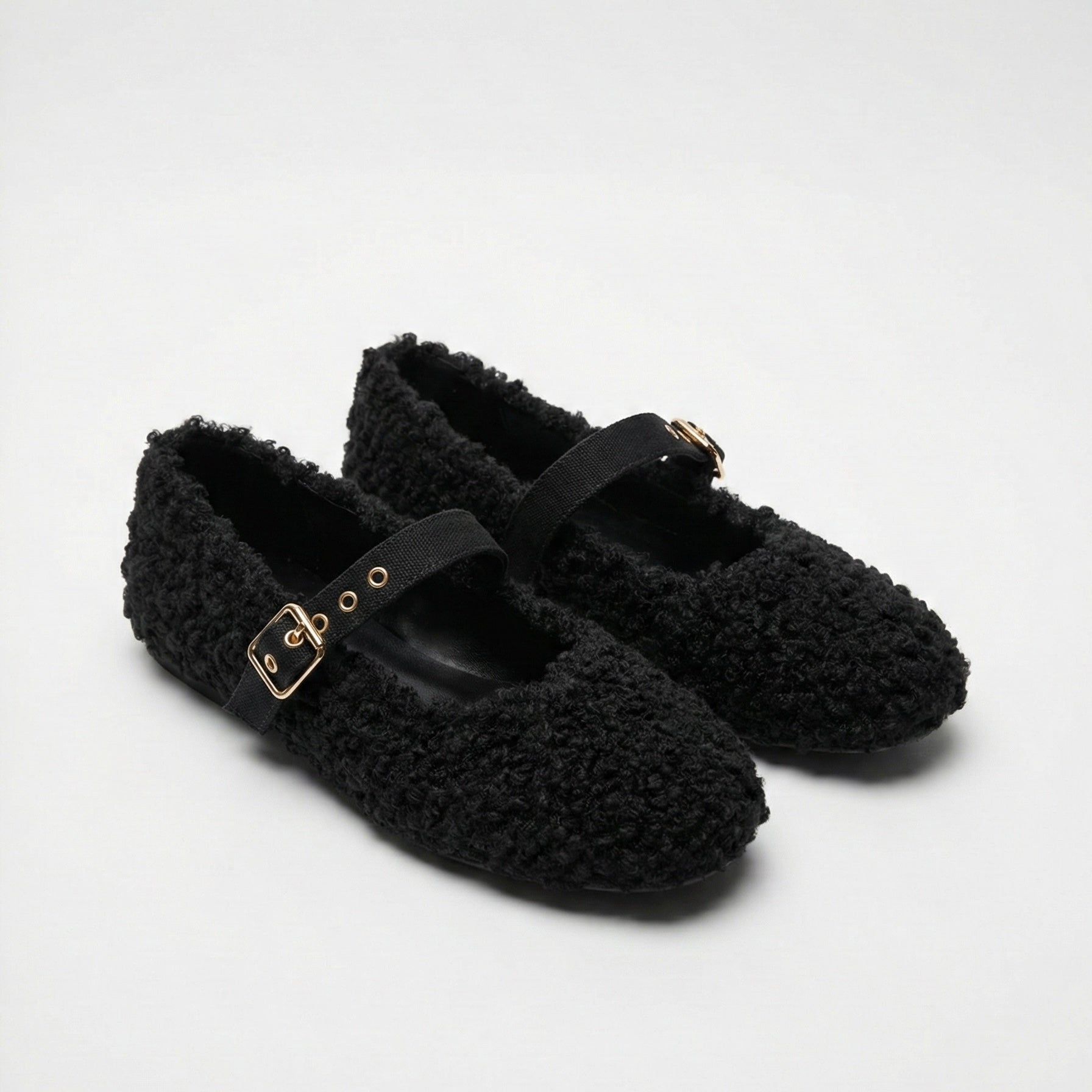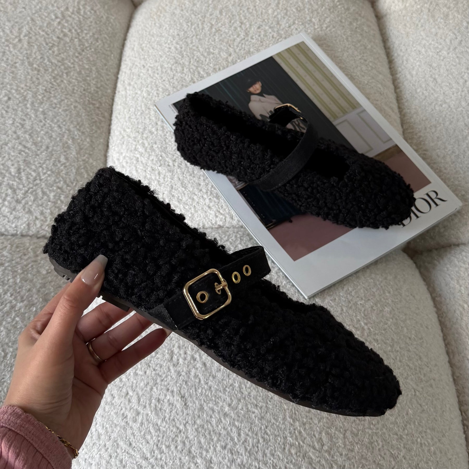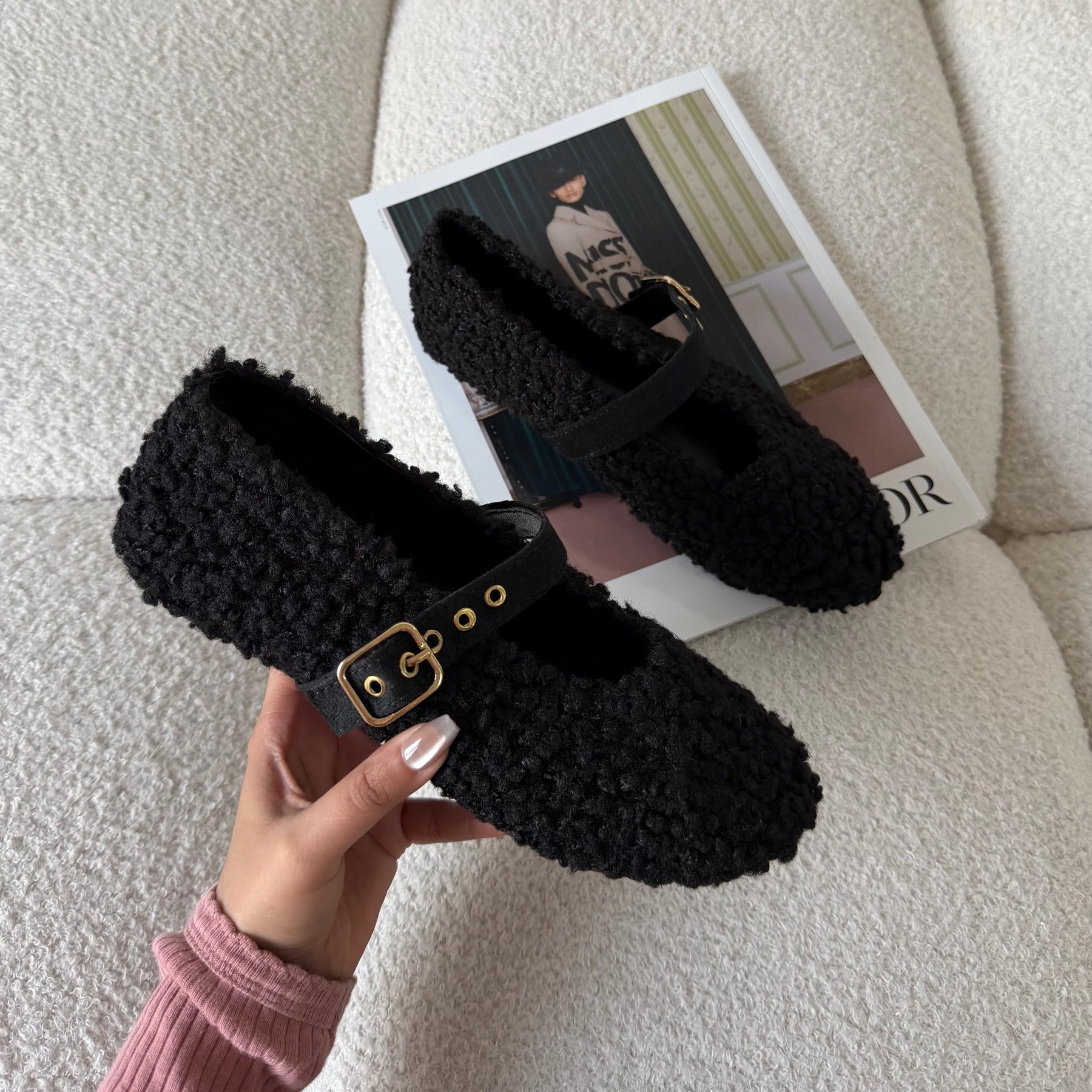 Soft, cozy Teddy Ballet Flats designed to keep your feet warm all winter. Finished with an elegant strap and plush texture for effortless style.