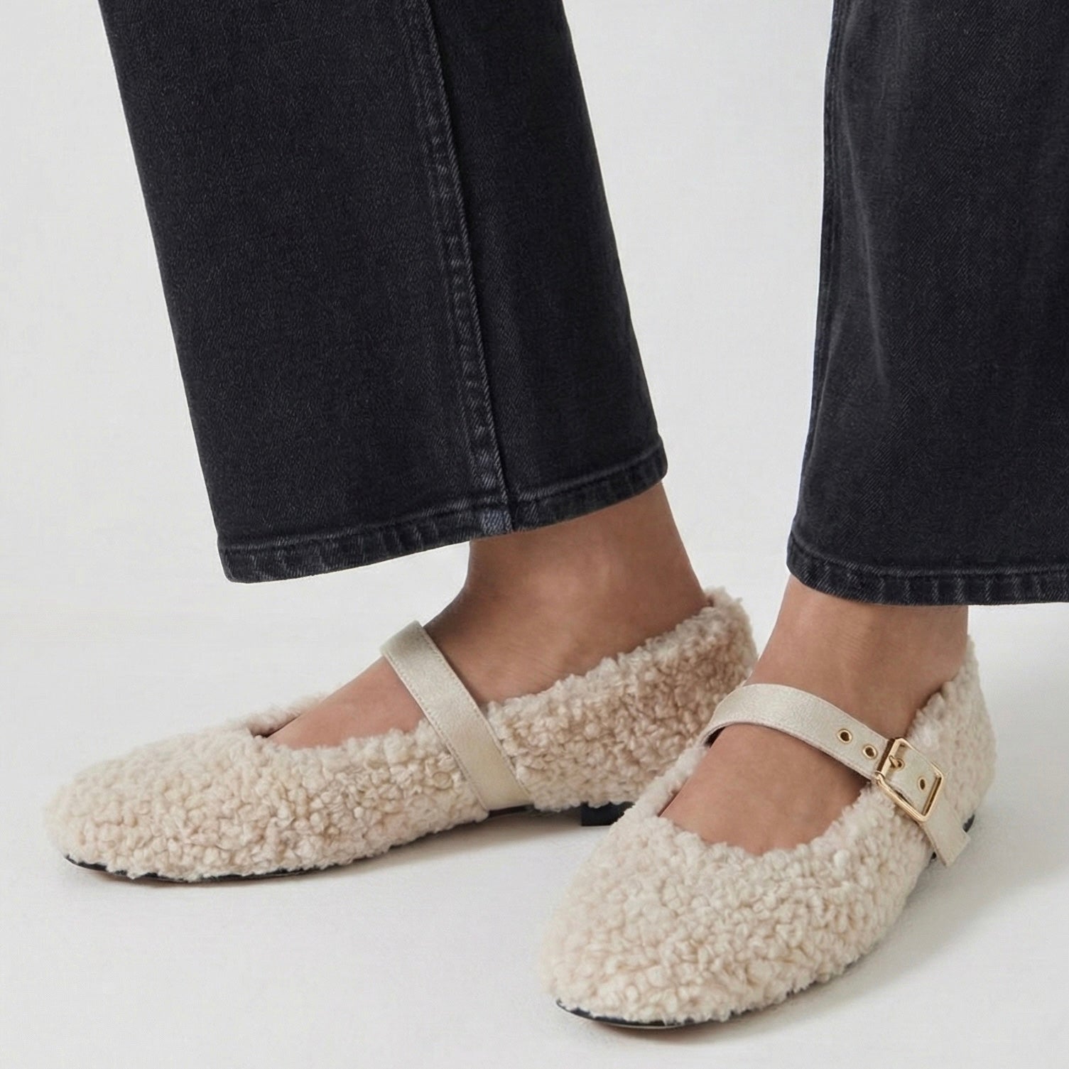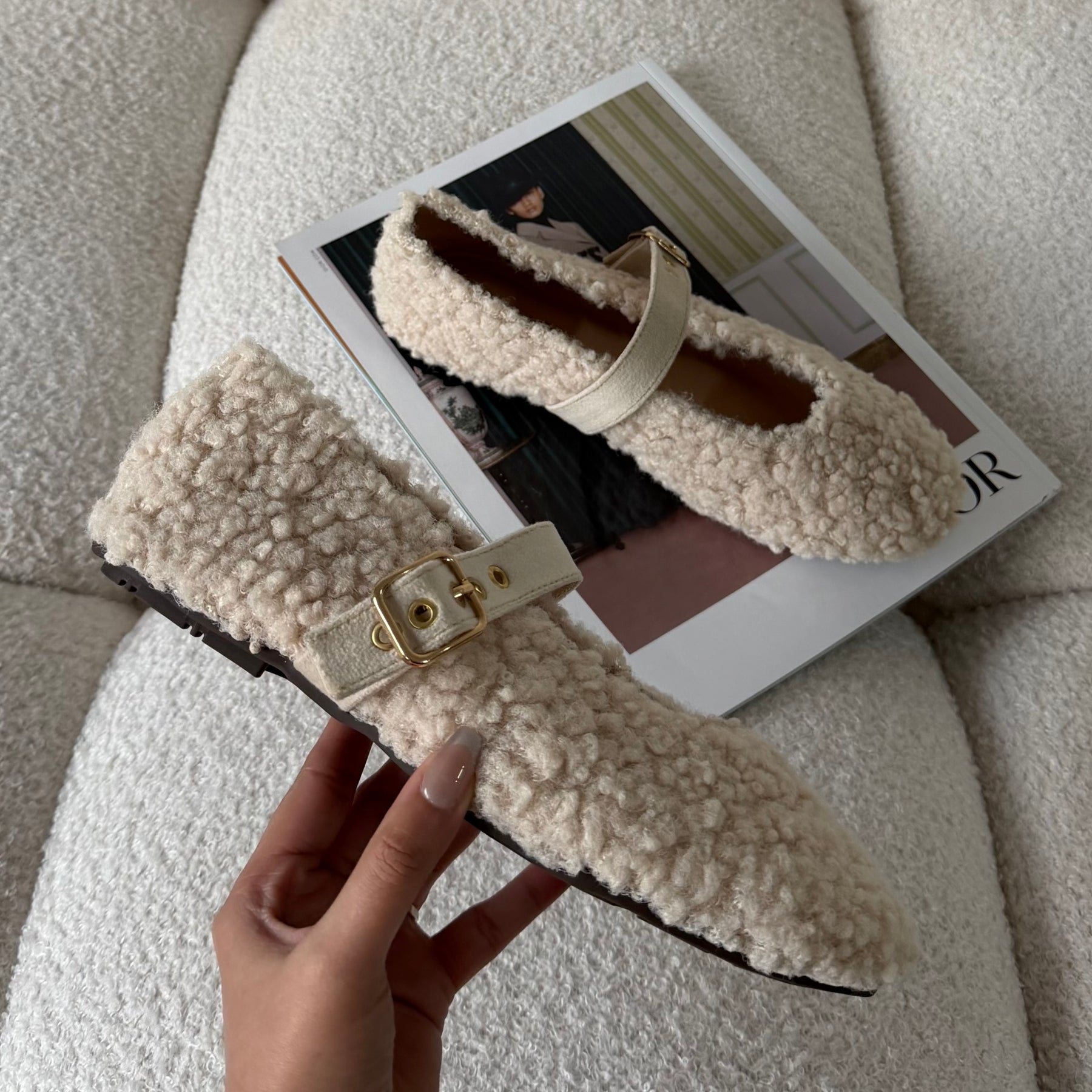 Soft, cozy Teddy Ballet Flats designed to keep your feet warm all winter. Finished with an elegant strap and plush texture for effortless style.